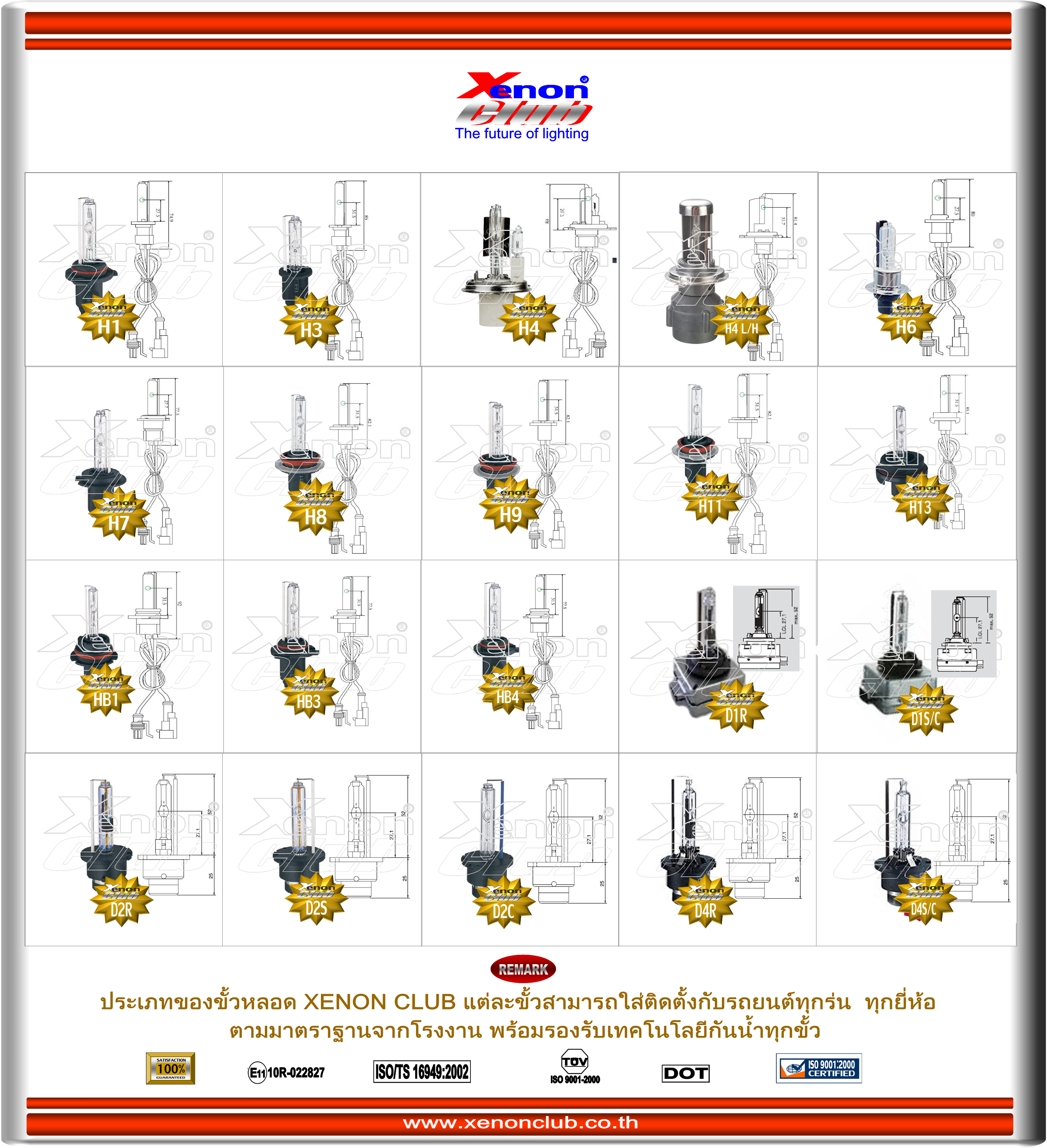 ประเภทของหลอด XENON HID สำหรับรถยนต์ - จักรยานยนต์