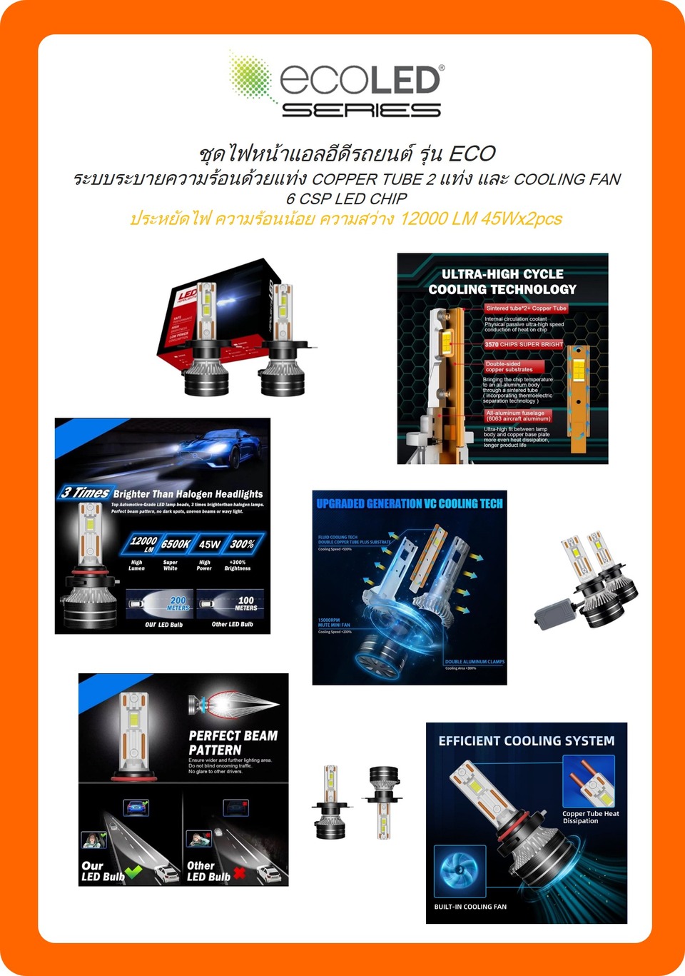 สำหรับรถยนต์ที่ระบบไฟหน้าเดิมเป็นหลอดไส้ฮาโลเจนธรรมดา ลูกค้ามักจะเจอปัญหาเรื่องไฟหน้าไม่สว่าง ทำให้ไม่ปลอดภัยสำหรับการขับขี่รถยนต์เวลากลางคืน อีกทั้งหลอดฮาโลเจนที่ติดรถมาความร้อนในโคมไฟหน้า ค่อนข้างสูง ส่งผลให้โคมไฟหน้าเสื่อมสภาพและเหลืองเร็ว อีกทั้งคุณสมบัติหลอดฮาโลเจน จะมีอายุการใช้งานสั้น ขาดง่ายกรณีที่ตกหลุมหรือวิ่งทางขรุขระ ก็มีโอกาสที่หลอดจะขาดได้ง่ายขึ้น ทางเลือกในการแก้ปัญหาเหล่านี้คือ การติดตั้งไฟหน้ารถเป็นระบบแอลอีดี LED HEADLIGHT ซึ่งจะมีความสว่างเพิ่มขึ้นหลายเท่าเมื่อเทียบกับ หลอดเดิมฮาโลเจน แต่กลับกันความร้อนภายในโคมลดลง ซึ่งจะไม่ทำให้โคมไฟหน้าเหลืองเร็ว อีกทั้งหลอด LED ก็มีอายุการใช้งานยาวนานกว่าหลอดฮาโลเจนติดรถด้วย ในกรณีที่รถบางรุ่นที่เป็นระบบไฟซีนอน XENON HID มาจากโรงงานและมีปัญหาความสว่างยังไม่เพียงพอ หรือมีอาการเสีย ดับ ก็สามารถมาอัพเกรดเป็นระบบไฟหน้า แอลอีดี LED นี้ได้ด้วยเช่นกันจะได้ความสว่างที่ดีขึ้น ระบบไฟหน้า LED HEADLIGHT มีให้เลือกติดตั้งลายรุ่นดังนี้