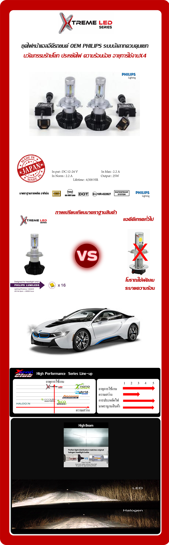 ชุดไฟหน้าแอลอีดีรถยนต์ OEM PHILIPS ระบบบัลลาทควบคุมแยก